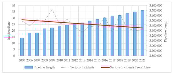 Based on Pipeline and Hazardous Materials Safety Administration (PHMSA) data [38], which are presented in Figure 15, it can be observed that serious accidents are decreasing due to pipeline inspections and PIM. As a part of PIM, the ILI approach produces the most precise and reliable results when conducting pipeline inspection activities [39]. ILI techniques in distribution lines can only be executed by robots, but the difficulty of wireless communication over long distances precludes their use. As a result, this enhancement could be accomplished using ILI techniques that are only applied to gas transmission lines.