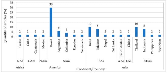 Distribution by country of searches found. Note: North Africa = NAf; Central America = CAm; North America = NAm; South America = SAm; South Asia = SAs; West Asia = WAs; Eastern Asia = EAs; Southeast Asia = SEAs.