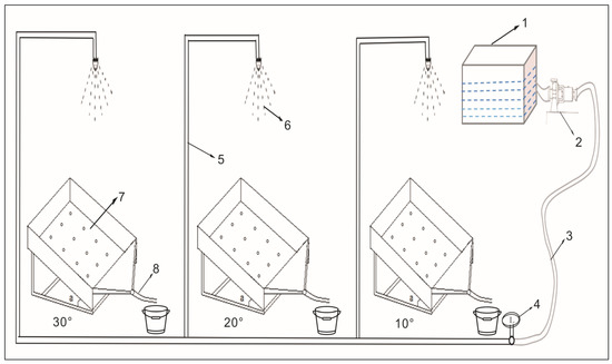- Zhao, Q.; Li, D.; Zhuo, M.; Guo, T.; Liao, Y.; Xie, Z.J.S.E.R.; Assessment, R. Effects of rainfall intensity and slope gradient on erosion characteristics of the red soil slope. Stoch. Environ. Res. Risk Assess. 2015, 29, 609–621. [Google Scholar] [CrossRef]