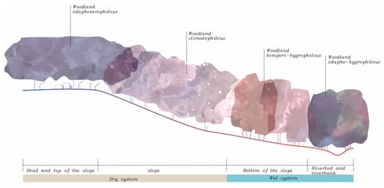 The distribution of vegetation in these two systems is also determined by the interaction of soil, climate, and terrain morphology factors. In this dynamic we can designate that the edapho-hygrophilous and tempori-hygrophilous vegetation is associated with areas adjacent to the water lines, where water availability is greater. The climatophilous vegetation is associated with the slopes and depends exclusively on the local climate. Finally, the edaphoxerophilous vegetation is associated with headland areas, with poor water retention, such as rocky outcrops [], see Figure 2. For each of these typologies a set of potential natural vegetation is associated. This morphological reading of the landscape in urban space becomes important as, for each urban situation, it allows the identification of the set of plants to be integrated in the vegetation system, with guarantees of better adaptation.