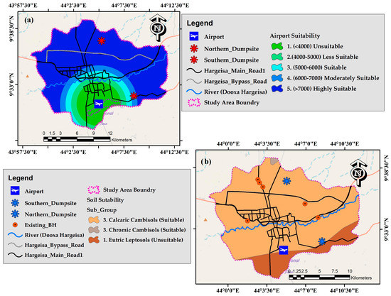 Landfill site suitability criteria for (a) airport, (b) soil type.