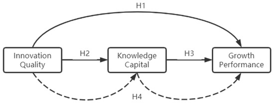 According to the resource-based view, an enterprise is a collection of resources, and the tangible and intangible resources mastered by an enterprise are the important sources for its competitive advantages and long-term development. On the one hand, innovation is an important driving force for enterprise development. Different from the growth of innovation quantity, innovation quality reflects the breakthrough achievements in technological research and development [14], which can measure the level and development of technological innovation of enterprises and is closely related to the maintenance of competitive advantages, performance growth and sustainable development of enterprises [15]. On the other hand, knowledge resources are the most important and strategic for the development of enterprises. Due to their intangibles and imitations, they reflect the competitiveness and development potential of enterprises to some extent [16]. Based on the existing literature research and the above theoretical analysis, this paper attempts to explore the influence of innovation quality on the growth performance of entrepreneurial enterprises from the perspective of knowledge capital and clarify the path mechanism of innovation quality on the growth performance of entrepreneurial enterprises. In theory, it expands the research on enterprise innovation and growth and provides practical guidance for the vigorous development of entrepreneurial enterprises.