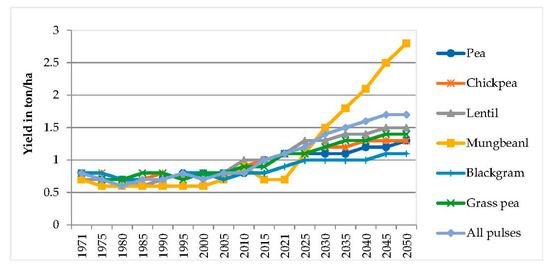 Projection of yield of pulses crops during 2030 to 2050.