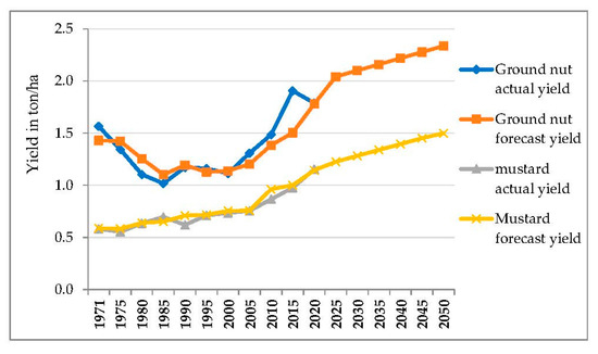 Projections of ground nut and mustard crop yield during 2030 to 2050.