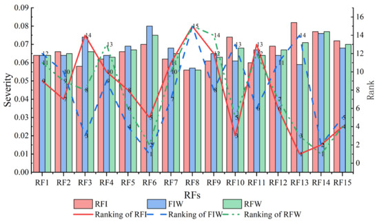 Through the first HoQ, the basic severity of RFs can be obtained from Equation (18).
