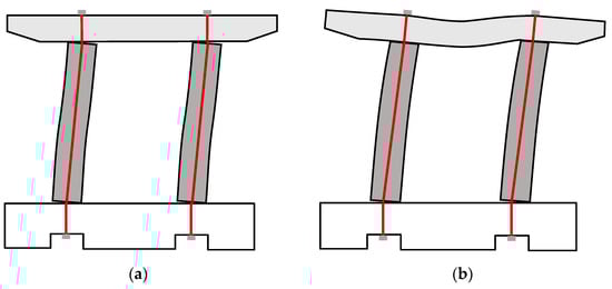 Figure 7 illustrates the effect of different capping beam stiffnesses on the inflection point of the columns. For example, a rigid beam, as shown in Figure 7a, can divide the column into two parts for individual calculations, whereas a flexible beam, as shown in Figure 7b, can be analyzed as a single-column pier.