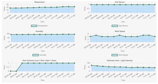 The live-data collection location and the latitude and longitude of the experimental location is 8.2473502, 77.2743729, 345. The data was collected from Kanyakumari, Tamil Nādu, India. This location has seasonal rainfall, and basic requirements were collected using IoT devices. Three basic components, such as IoT devices, gateway and cloud, were interconnected to communicate and transfer data from the physical location to the cloud. Four different fields were used for collaboration and decision-making in the mentioned location.