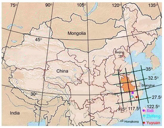 Through the analysis of the traditional villages in the Huizhou region and due to the limitation of measurement and the fact that the “RI” plain form was a combination of the “AO” plain form, in this paper, the main measured skywell forms were: the “AO” plain form, the “H” plain form, and the “HUI” plain form. The authors selected the main research objects of this paper as Xidi Village (29°54′ N 118° E), Yuyuan Village (28.77° N 119.66° E), and Zhifeng Village (29.28° N 117.67° E) on the basis of the research summary []. The three villages are in Southeastern China with similar latitudes and longitudes, and they all lie in the subtropical monsoon climate zone.