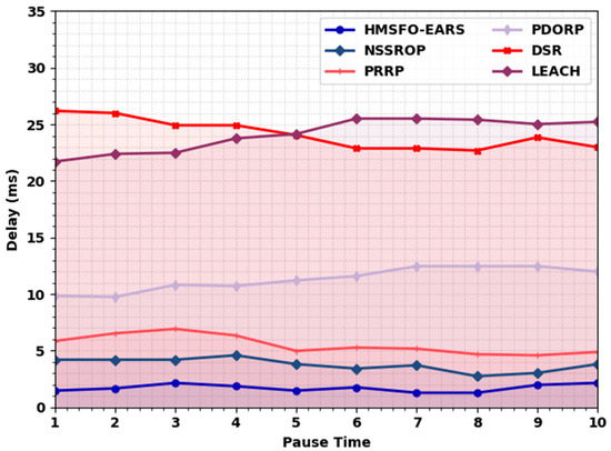Delay analysis of HMSFO-EARS system with existing approaches under different pause times.