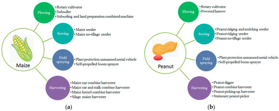 Key links and machinery of maize and peanut production: (a) Maize; (b) Peanut.