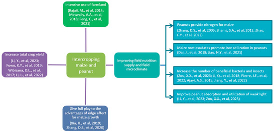 Advantages of intercropping maize and peanut [2,3,5,15,20,23,24,25,26,27,28,29,30,31,32,33,34,35,36].