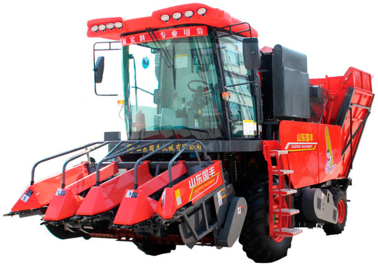 Self-propelled four-row maize combine harvester. Copyright 2023, Shandong Guofeng Machinery Co., Ltd., Jining, China.
