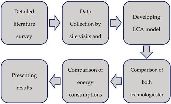 Life cycle assessment (LCA) is an efficient tool to analyze the environmental impacts, inputs, and outputs of different products during their life cycle [30]. Moreover, LCA serves as an effective method when comparing conventional technologies with modern ones [31] and can be considered from the product design and development phase [32]. LCA is a multifaceted tool used to conduct studies in different areas and industrial infrastructures [33]. Regarding the LCA study of brick kilns, the first study on the LCA of bricks was conducted in 2007 [34]. Since then, several studies have been conducted each year on the life cycle of bricks and their production technologies. Regarding software for the LCA, SimaPro has been widely employed; however, openLCA has been used since 2016 and is becoming a popular software among practitioners [35]. Throughout their life cycle, brick kilns need non-renewable raw materials, high temperatures for the production phase, and enormous amounts of energy as inputs [36]. As a result of combustion, greenhouse gases emitted from their chimneys serve as outputs [37].