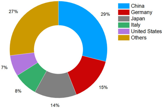 Over the last two decades, the annual machine tool trade value has escalated continuously. As of 2020, almost USD 2.5 billion generated in global machine tool exports. The distinct global machine tools trade evolution is primarily determined by the type of global economic transformation. As more and more countries experience an industrialization trend, the demand for advanced facilities for industrial production is increasing in parallel. The pie chart of the market share of the leading producers of machine tools in the year 2020 is depicted in Figure 4.
