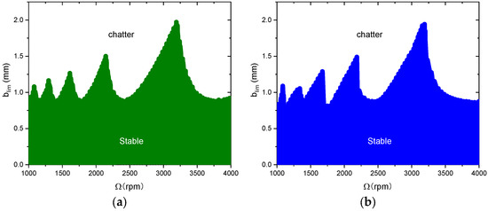 - Gradišek, J.; Kalveram, M.; Insperger, T.; Weinert, K.; Stépán, G.; Govekar, E.; Grabec, I. On stability prediction for milling. Int. J. Mach. Tools Manuf. 2005, 45, 769–781. [Google Scholar] [CrossRef]