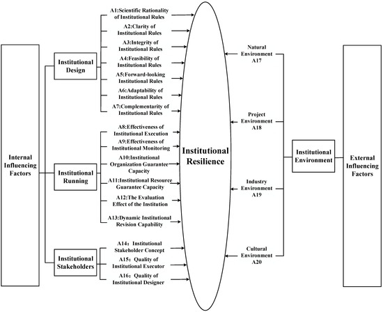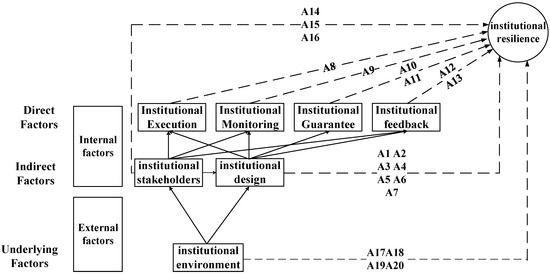 On the basis of the four major categories and the intrinsic links between the categories obtained in the previous section, a theoretical model of the causes of institutional resilience was constructed, as shown in Figure 2.