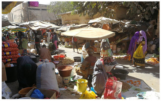 Market in Thiès, Senegal. Africa’s urban growth is striking, with a high percentage of its cities’ working-age population either unemployed or under-employed. For the urban majority, being informally (self-)employed in a variety of small-scale enterprises is the only way to earn living. These micro-enterprises have recently been recognized by the continent’s urbanists and economists as a positive force toward achieving socio-economic betterment. They point to the need to formalize and integrate the informal sector better, in order to enhance stability and livability, and to build social sustainability and resilience (authors’ photo; for a further elaboration of this point by author see [35]).