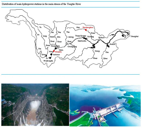 The Yangtze River in China is the third longest river in the world. The Yangtze River Basin is relatively rich in water resources. Jinsha River is the upper reaches of the Yangtze River, and Han River is its largest tributary. In this paper, the Xiluodu Hydropower Station and the Danjiangkou Reservoir of the South to North Water Diversion Project in China were chosen as case studies to test the applicability and rationality of the quantitative method. The geographical locations of two projects are shown in Figure 1.