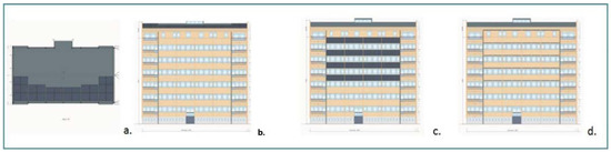 The next step in this phase (step 2.2 in Figure 1) is the selection of adequate measures to improve thermal performance of both see-through and non-transparent parts of the building envelope and the use of renewable energy technologies, i.e., various types of photovoltaic (PV) systems and/or solar water-heating systems (SWHSs), to produce energy on-site if the building’s characteristics and its context allow it. This is a very challenging and complex task, especially if solar PV or solar thermal collectors (STCs) are to be implemented on facades. An iterative procedure is proposed to correctly position the solar panels to meet energy, functional, and aesthetic requirements/criteria.