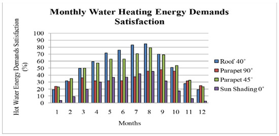 The extent to which solar panels will be effective largely depends on the shading in the building’s surroundings and orientations of the respective façade walls/roofs. South, south-west, and south-east orientations, with small or negligent shading, generally allow PV systems and STCs to perform to their highest potential. The roofs are also more convenient for PV systems and STCs in a city environment given that buildings packed against each other and urban greenery are a source of shading [72]. The decision on where to place solar photovoltaics and STCs is made after considering the characteristics of the building, the surroundings, and the climatic characteristics of the area, and the designer’s creativity also plays a role in the process. Commonly, the convenient locations are the balconies, parapets, railings, and solar shading fittings, as well as new cladding fixtures mounted over the existing facades, or even solar panels mounted over existing roofs [74]. Other factors to be taken into account are the mounting option and the STCs’ tilt angle on the building envelope, since they impact the STCs’ efficiency [75,76], as well as the building’s functionality and aesthetics. Different design options are compared against the set energy savings objectives, preferably using tailored computer programs that facilitate making optimizations, e.g., in dimensioning of solar PV and STC area, storage tank volume, and other SWHS elements such as the pump, controller, heat exchanger, and auxiliary heating system [77,78], to achieve better thermal energy production, water heating, air conditioning, etc. The number of design variants depends on the set of requirements that must be met, as well as the characteristics of both the building and the PV and SWHS type, their availability in the market, and the designer’s resourcefulness [72,78]. The project requirements that usually need to be met include ‘2030 climate and energy targets’ (i.e., minimum level of improvement in energy efficiency, minimum level of reduction in greenhouse gas emissions, minimum share level for renewable energy, etc.), system reliability, and requirements related to system quality and durability.