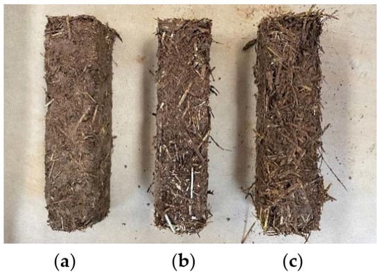 Samples (a–c) of clay plaster with their respective proportions.