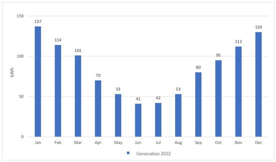 Despite the modular construction system evaluated having reduced thermal transmittance values, the integration of photovoltaic panels is proposed to reduce the energy consumption provided by the public grid and only rely on the self-generation of energy. To achieve this, the characteristics of the dwelling are entered into the Solar Explorer of the Ministerio de Energía, the characteristics of the dwelling are entered, considering the use of two JAM72s20-465 photovoltaic panels, resulting in the outcome shown in Figure 8.