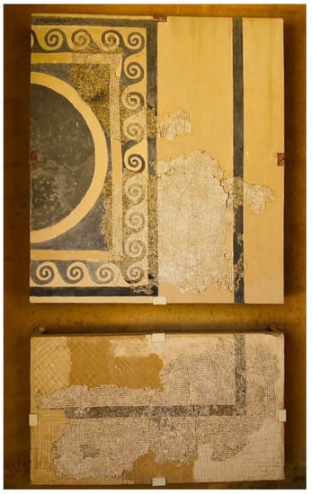 - Dunbabin, K.M.D. Mosaics of the Greek and Roman World; Cambridge University Press: Cambridge, UK, 1999. [Google Scholar]