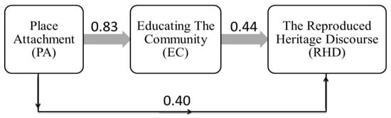 In addition, Scannell and Gifford [72] pointed out that one of the powers of place attachment is manifested through cognition, thereby realizing the value of the heritage place, preserving it, and educating the community about it. As such, the model proposes that attachment to Byzantine mosaic places has a positive impact on educating the community.