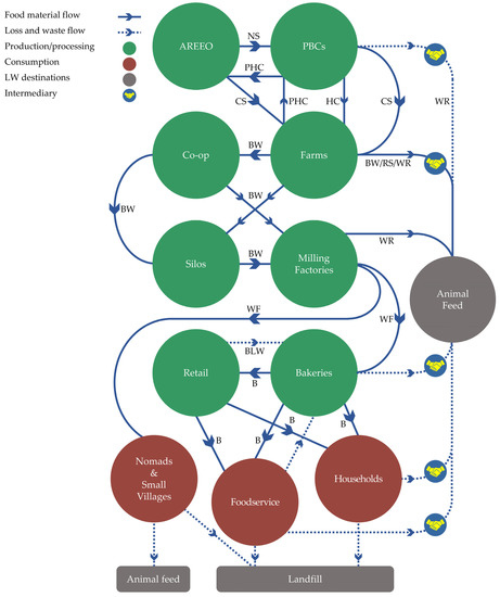 APA StyleGhaziani, S., Dehbozorgi, G., Bakhshoodeh, M., & Doluschitz, R. (2023). Identifying Loss and Waste Hotspots and Data Gaps throughout the Wheat and Bread Lifecycle in the Fars Province of Iran through Value Stream Mapping. Sustainability, 15(10), 8404. https://doi.org/10.3390/su15108404