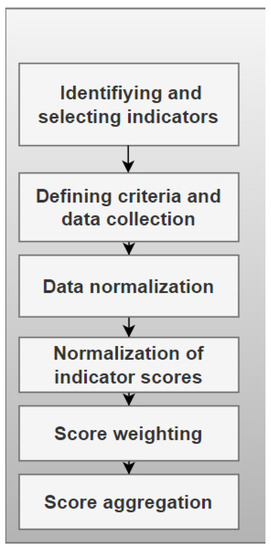 The main chronological steps that are applied when developing a composite sustainability index are illustrated in Figure 3 below.