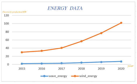 Wind and wave power generation production data (in MW) from https://www.nrel.gov/index.html, accesses on 10 January 2023.