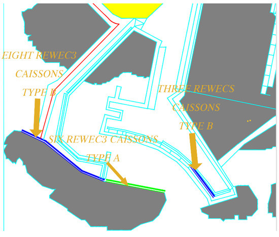 - Contestabile, P.; Ferrante, V.; Di Lauro, E.; Vicinanza, D. Prototype overtopping breakwater for wave energy conversion at port of Naples. In Proceedings of the 26th International Ocean and Polar Engineering Conference, San Francisco, CA, USA, 25–30 June 2017; OnePetro: Richardson, TX, USA, 2016. [Google Scholar]