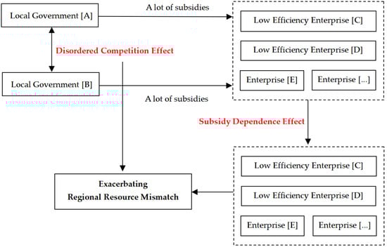 Studies have shown that when the market mechanism is not perfect, government intervention may be conducive to the realization of optimal allocation of resources to a certain extent, but it will inevitably lead to efficiency distortion, which will lead to resource mismatch [37]. For a long time, the government’s strong support has played a positive role in promoting the rapid development of CRE [38]. Today, the success of CRE depends largely on the large subsidies of the Chinese government [39], which shows that its political effect is significant. However, at the same time, the distorting effect of subsidies on transport prices may also have negative social effects: excessive government intervention restricts the functioning of the market-oriented operation mechanism, making the CRE market fail to operate in an optimal state. This deviation from the competitive equilibrium has caused social welfare losses and serious resource mismatch problems [40].