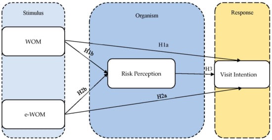 However, scholars have yet to concern more on tourist behavior or tourists’ visit intention in a destination in post-earthquake disaster using SOR theory. Thus, this study tried to investigate the SOR theory to examine the tourist visit intention by using word of mouth, electronic word of mouth, and risk perception in the case of post-earthquake disaster (natural disaster) in Indonesia. According to SOR theory, word of mouth refers to a “stimulus” that transfers into a behavioral intention as a “response” [32,33]. Moreover, in the context of post-disaster, no study has been conducted to explain the influence of word of mouth and electronic word of mouth on visit intention in the case of a post-disaster using the SOR theory.
