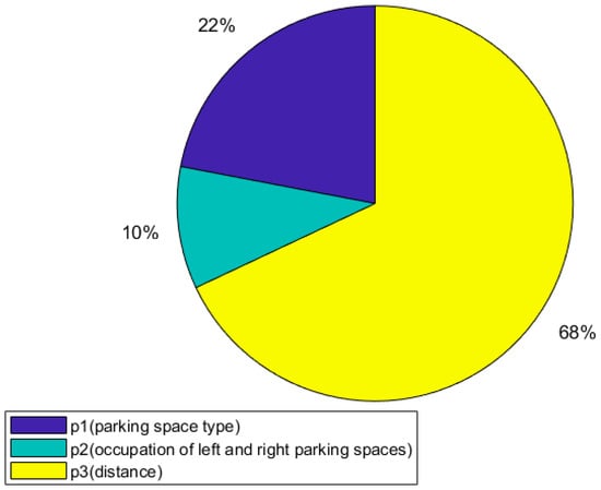 The weights of the three attributes of parking space type, parking space occupancy to the left and right of the parking space, and the distance between the target parking space and the starting position are reassigned by the entropy weight method, and the obtained results are shown in Figure 15.