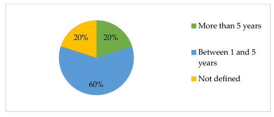 All respondents confirmed a perspective for the introduction of cold ironing technology in their ports. According to the experts, Figure 4 shows the approximate time it will take for alternative marine power to be fully operational in their ports. For 20% of the ports, there is no defined cold ironing technology implementation perspective. The results show that 60% of the ports need a period between one and five years for implementation. Finally, for 20% of the experts’ answers, the application period is more than five years.