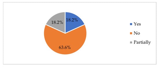 Figure 7 shows that a significant proportion of surveyed companies in the Republic of Croatia are not engaged in the implementation of cold ironing technology in state ports in any way. Specifically, 63.6% of the surveyed participants stated that they have no contact with the mentioned technology. The remaining 36.4% of participants have dealt with the technology to some extent, of which 18,2% had direct or partial contact with the technology in question.