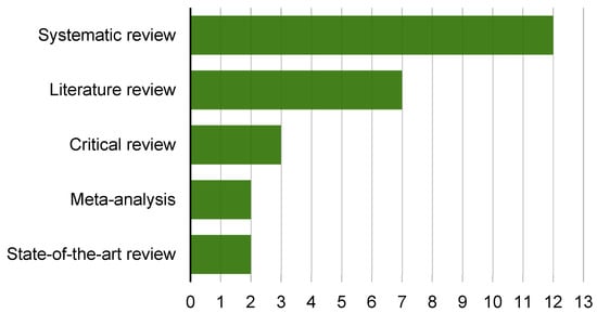 - Grant, M.J.; Booth, A. A Typology of Reviews: An Analysis of 14 Review Types and Associated Methodologies. Health Inf. Libr. J. 2009, 26, 91–108. [Google Scholar] [CrossRef] [PubMed]