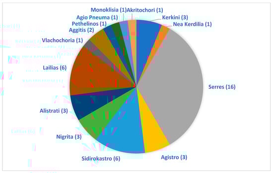 The research through the Greek Internet resulted in the retrieval of 48 of the Alternative Tourism Enterprises (ATEs) in the Prefecture of Serres. Figure 1 presents the areas where these ATEs are located. Most ATEs (16) are located in the city of Serres, six ATE are located near Lailias ski area and 12 ATEs are located in the city of Sidirokastro and in Agistro village (famous areas for their therapeutic baths). Furthermore, three ATEs are established near Lake Kerkini, an attractive eco-tourism destination.