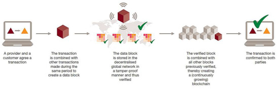 The concept of blockchain technology was proposed by Satoshi Nakamoto in 2008, and was first applied in practice when Bitcoin appeared in 2009 [43]. Currently, cryptocurrencies are among the most promising blockchain applications. Mainly due to decentralization (bypassing intermediaries, such as banks), their implementation for individual and organizational purposes created huge potential for business [44]. However, the scope of blockchain is noticeably wider. Blockchain is a system of records on the transfer of any value on the principle of “peer-to-peer”.