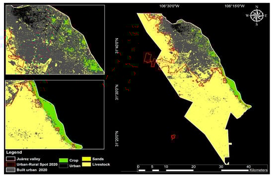 The results of this study coincide with the hypothesis of the work of Pérez and Romo [13], where they indicated the relevance of urban growth in the borders since the 1960s, adding infrastructure planning problems, specifically in the southeastern area of Ciudad Juárez, where it is also indicated that this expansion/urbanization and effect are applied to agricultural or crop land uses.