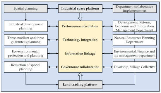 In the first stage, we established a database of industrial land projects based on the cadastral code that records information about rural industrial land, and relied on the industrial space platform to “link” the whole process of planning, approval, land supply, and registration [53] to realize the efficient linkage, sharing, and exchange of industrial information between management departments. By promoting the expression and coordination of spatial planning elements on the same drawing, the industrial spatial platform strengthens the integrated implementation of territorial planning and implements “multiple compliance and reduction planning”. In addition, the government will set up an online land trading platform for enterprises and the public, collect and release information on the demolition, transfer, and leasing of rural industrial land in the region, and provide market-oriented transfer services and share index transactions. The land trading platform takes into account the efficient linkage between the demand of industrial enterprises and the supply of land space, and realizes the accurate supply of rural industrial land. It is useful for correcting rural industrial land’s inefficient sprawl and conserving the natural environment.