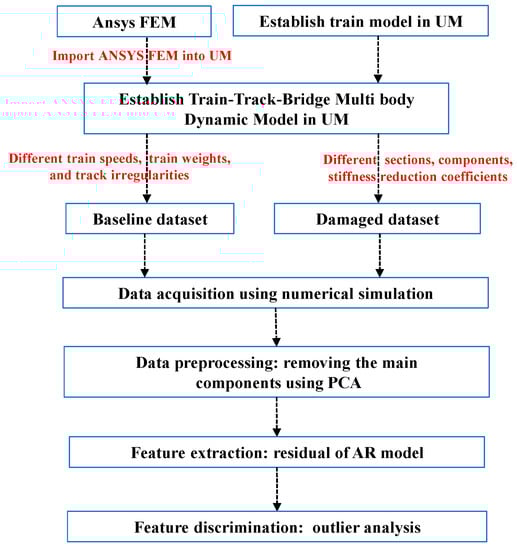- Cavadas, F.; Smith, I.F.C.; Figueiras, J. Damage detection using data-driven methods applied to moving-load responses. Mech. Syst. Signal Process. 2013, 39, 409–425. [Google Scholar] [CrossRef]