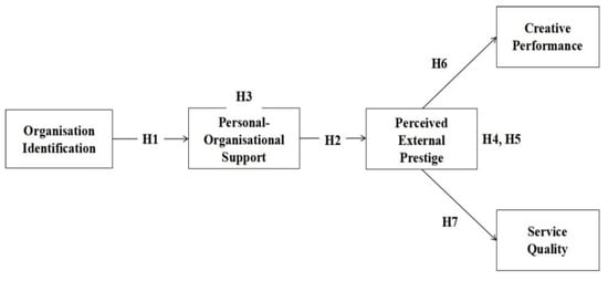 Perceived external prestige mediates the relationship between perceived organisational support and service quality.