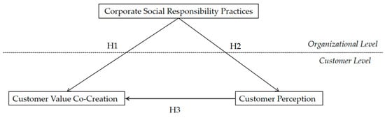 The research structure of this study is shown in Figure 1. The study includes organizational-level variables such as corporate social responsibility practice, and customer-level variables such as customer perception and co-creation of customer value. The main focus is to test the mediating effect of customer perception on the relationship between corporate social responsibility practice and co-creation of customer value.