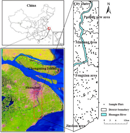 Cinnamomum camphora (L.) J.Presl, Metasequoia glyptostroboides Hu and W. C. Cheng, Populus tremuloides Michx, and Ginkgo biloba L. are the dominant urban–rural transect tree species in the study area. However, the distribution of urban woody vegetation is highly uneven among districts, mainly because Shanghai’s development includes an extensive underground rail network, whose construction had destroyed the root systems of numerous trees. In addition, many tall buildings cast heavy shading and changed natural light conditions for growth of plants. Therefore, city managers are increasingly aware of the importance of protecting urban vegetation and providing suitable growth conditions.