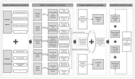 China is in an accelerated period of urbanization and transformation of the rural industrial structure. Changes in the public space functions of traditional settlements have become an inevitable trend, causing adaptive evolution and adjustments to the spatial structure. Hence, the study of deep spatial structure and order, from the functional attribute perspective, compensates for the inadequacy of existing research on the relationship between the system and functions of public spaces in traditional settlements. Simultaneously, it can provide a scientific basis for the functional transformation and structural reconstruction of the public spaces of traditional settlements in contemporary China to achieve more coordinated protection and development of the public spaces of traditional settlements at the structural level.
