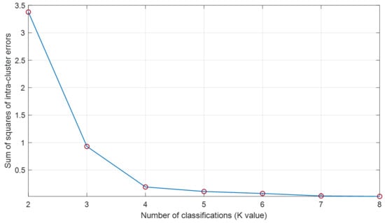 The number of zones is determined according to the elbow principle mentioned in Section 2.3.4, as shown in Figure 7:
