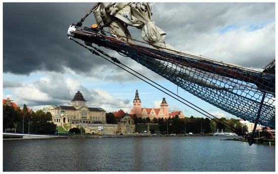 | ![]() Postcard from Szczecin, 2006. Source: https://fotopolska.eu/ (accessed on 31 March 2023) |