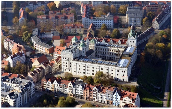 - Białecki, T.; Turek-Kwiatkowska, L. Szczecin Stary I Nowy; Tom I–II, Szczecińskie Towarzystwo Kultury: Szczecin, Poland, 1991. [Google Scholar]